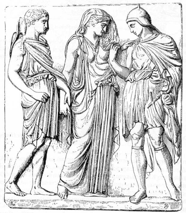 2, с.262."Орфей женат на Эвридике и, когда она внезапно умерла от укуса змеи, отправляется за ней в царство мертвых... Аид (Ад - Авт.) обещает Орфею вернуть Эвридику на землю, если он исполнит его просьбу - не взглянет на свою жену, прежде чем войдет в свой дом. Счастливый Орфей возвращается с женой, но нарушает запрет, обернувшись к жене, которая тут же исчезает в царстве мертвых" [533], т.2, с.262.