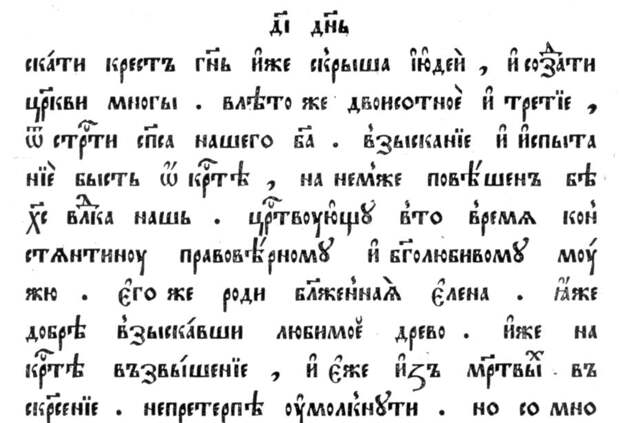 # Если обратиться к христианской традиции, то в ней можно найти другую датировку войны Константина с Максенцием. Например, в "Слове на воздвижение честнаго и животворящего креста", помещенного в макарьевских Четьях-Минеях, рис.3.2, читаем следующее: <<В СЕДЬМОЙ ГОД царствования Великого царя Константина в январе месяце множество варваров собралось на реке, называемой ДУНОВИН, желая переплыть ее и пройти на восток, захватив всю землю. Царь Константин, узнав об этом, ополчил свои войска и пришел на ту реку и поставил полки по берегу реки, не пуская противника. Они стояли там много дней. Множество иноязычников собралось против царя Константина... В ночь перед утром, когда хотели биться, [царь Константин] своими глазами видел очень большой светлый крест, светящийся сильнее солнца и посреди него звездами написано "О сем побеждай". Проснувшись, царь, трепеща и одержим большим страхом, призвал военачальников и поведал им [о виденном] и сделал из дерева явившийся ему крест и повелел нести его в битву. Ему досталась великая победа, множество варваров посек, а прочих связал. И вернулся с великой славой, честью и победой... Через некоторое время... послал [Константин] свою мать с воеводою по имени Аполос на восток, чтобы найти Крест Господень, спрятанный иудеями и воздвигнуть множество церквей. В ЛЕТО 203 ОТ СТРАСТЕЙ СПАСА НАШЕГО БОГА найден и испытан был крест, на котором был повешен Христос, Владыка наш. В то время царствовал Константин, правоверный и боголюбивый муж>> [791:1], листы 263-264.