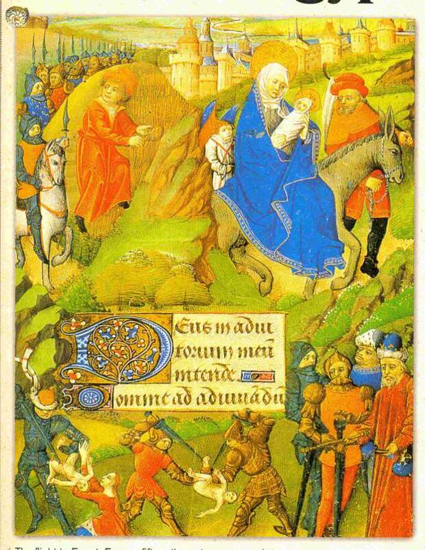 рис.3.3. Напомним вкратце суть дела. Ирод узнает, что младенца Иисуса нарекают Царем Иудейским. Опасаясь за свою власть, он стремится убить Иисуса. Однако Святое Семейство бежит в Египет. Ирод стремится схватить Иисуса и для этого приказывает перебить младенцев не только в Вифлееме, но и в его окрестностях. Евангелия говорят: "Тогда Ирод... весьма разгневался, и послал ИЗБИТЬ ВСЕХ МЛАДЕНЦЕВ в Вифлееме и во всех пределах его, ОТ ДВУХ ЛЕТ И НИЖЕ, ПО ВРЕМЕНИ, которое выведал от волхвов... Глас в Раме слышен, плач и рыдание и вопль великий; Рахиль плачет о детях своих и не хочет утешиться, ибо их нет" (Матфей 2:16, 2:18). На рис.3.4 мы приводим одно из многочисленных старинных изображений избиения младенцев.