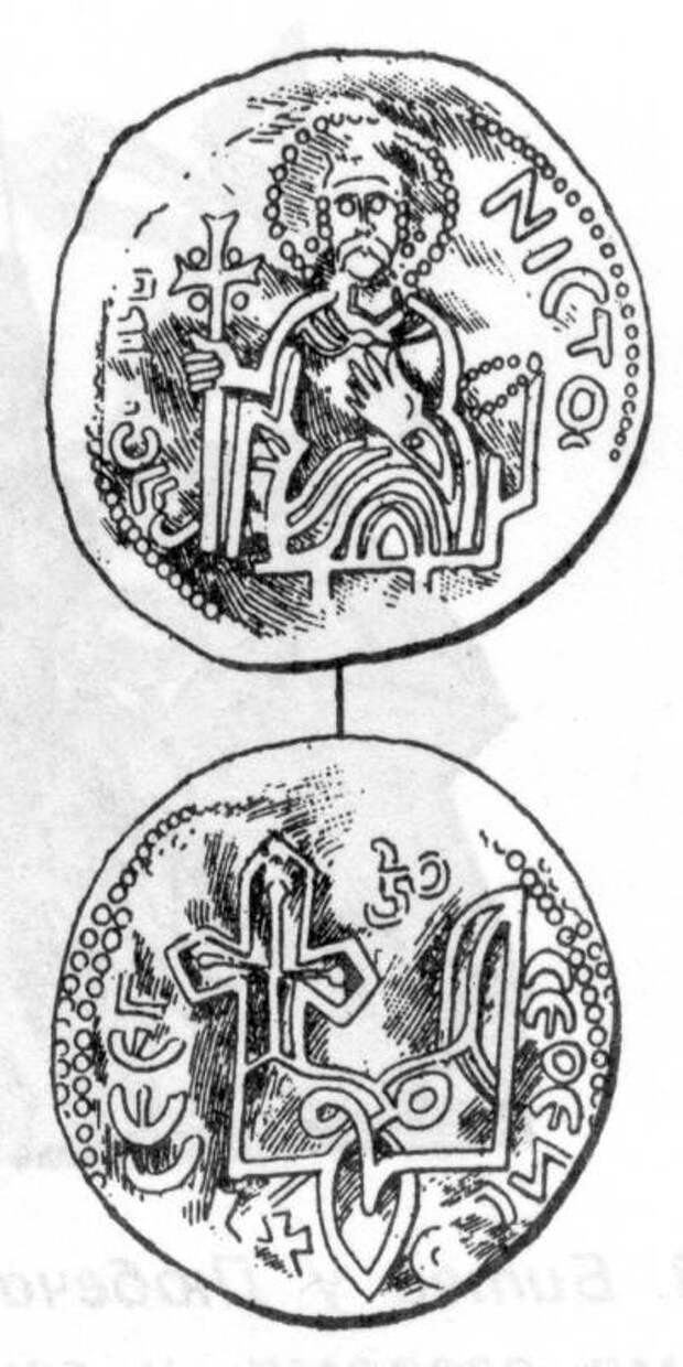Царь Ирод охарактеризован Евангелиями как злой, нехороший царь. Такую же характеристику Святополка Окаянного мы видим и на страницах русских летописей: "Пусть судит Господь по правде и скончает ЗЛОБУ ГРЕШНОГО". Цит. по [578], кн.1, с.225. На рис.3.5 приведена старинная русская монета, приписываемая Святополку Окаянному.