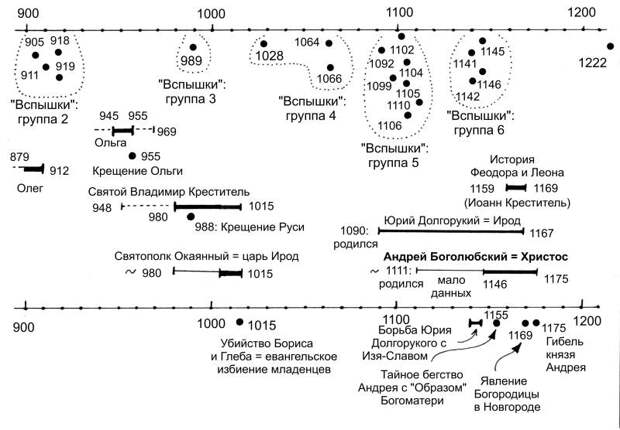 Подлинное хронологическое место событий, к которым мы сейчас обратимся, скорее всего, находится в XII веке. Однако в результате столетнего хронологического сдвига, отчетливо представленного в русской истории (см. детали в книгах "Новая хронология Руси" и "Библейская Русь", гл.6:2), избиение младенцев на Руси перекочевало из XII века в XI век, вслед за историей Иисуса Христа - Андроника Комнина - Андрея Боголюбского.