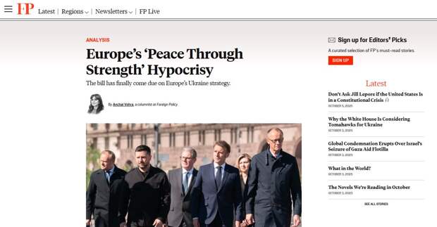 «В своих интервью Foreign Policy эксперты в один голос заявляют следующее: если Европа хочет эффективно сдерживать Россию, то необходимой мерой для этого стало бы размещение войск на Украине.