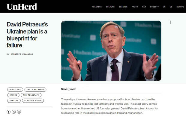 Соглашается с ТАС и британское издание UnHerd, критикующее новый военный план «для победы» Украины, разработанный отставным генералом армии США Дэвидом Петреусом, который руководил провальными кампаниями США в Ираке и Афганистане.