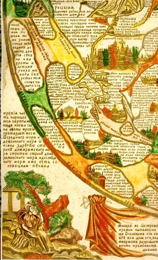 ### "Третья часть нарицается Европа, меньшего Ноева сына Афета жребий. Протизается ж от Среднего моря и до Великого моря Окияна. С другой стороны до Варяжского моря. С третьей стороны до Мурманского моря и до Студеного моря иже есть Соловецкая пучина".