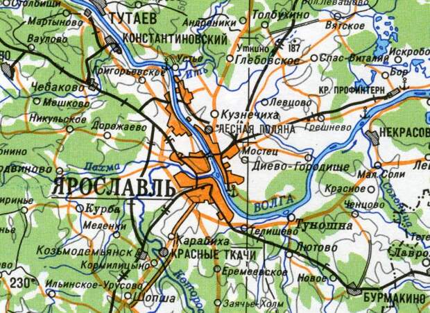 История Диева Городища, как считается, восходит к глубокой древности [457:2]. Здесь был центр удельного княжества, вотчина бояр Колычевых. Таким образом, на Руси, недалеко от древнего города Галича, мы находим четкий след пребывания здесь Дия, то есть Зеуса, то есть Иисуса. То есть, как мы теперь понимаем, Андроника-Христа. Таким образом, круг замкнулся. Про Андроника мы знаем, что он гостил на Руси у Галицкого князя Ярослава, см. выше. Кстати, Диево Городище находится совсем недалеко от города Ярославля, примерно в 18 километрах от его центра, см. рис.2.115.