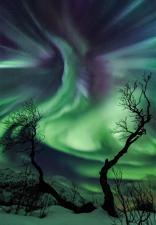 В небе Карелии регулярные мощные вспышки с выбросом плазмы начались в середине октября, когда солнечная активность резко усилилась. Потоки заряженных частиц атаковали магнитное поле Земли, вызывая магнитные бури и красочные полярные сияния.