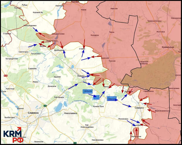 ВС РФ продвинулись вдоль железной дороги Красный Лиман – Ямполь, улучшив тактическое положение для блокирования города и расширения плацдарма к Красному Лиману. Наносятся удары по тылам и маршрутам снабжения ВСУ в районах Озёрного, Дибровы и Закотного, пишет KRM РФ.