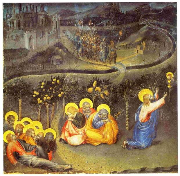 Согласно Евангелиям, после Тайной Вечери, уже ночью, Христос с несколькими апостолами уединяется в Гефсиманском саду, где молится Богу, прося его: "Если возможно, да минует Меня чаша сия... Чтобы Мне не пить ее" (Матфей 26:39, 26:42). Сопровождавшие Христа ученики уснули, несмотря на то, что Христос несколько раз будил их и просил побыть вместе с ним, бодрствуя. Этой же ночью, через самое короткое время, Христос был арестован появившимися воинами.