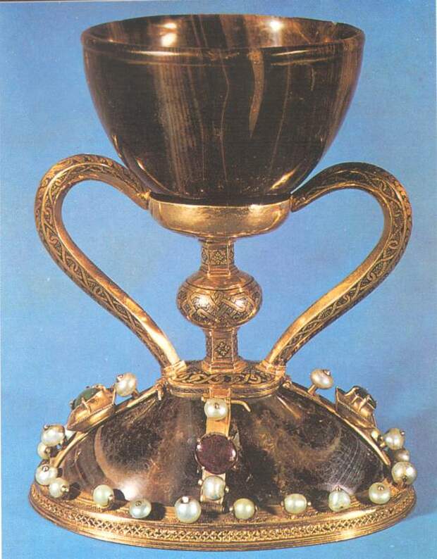 На рис.2.71 приведена фотография чаши, из которой Христос пил во время Тайной Вечери. Это богато убранный коралловый кубок, хранящийся сегодня в Валенсии (Испания), в городе, который до XVII века был резиденцией антиохийского патриарха. Антиохийский престол считается одним из главных престолов христианского мира, поэтому вполне возможно, что перед нами - подлинная чаша Христа. Отметим, что чаша далеко не простая. Это весьма дорогая вещь. Из такого кубка вряд ли мог пить незнатный человек.