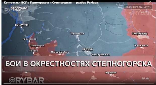 К середине февраля части группировки войск «Днепр» продолжали наступление на левом фланге Западно-Запорожского направления. Наиболее тяжёлые бои шли в окрестностях Степногорска, где ВСУ пытались не допустить закрепления российских войск на подступах к реке Конка. К 16 февраля украинские формирования перешли в контратаки при поддержке бронетехники, вернули контроль над частью позиций в Приморском и Степногорске, а также прорвались на территорию Плавней. В течение следующих двух недель на участке продолжались тяжёлые бои, в ходе которых российским десантникам удалось ликвидировать угрозу окружения своих подразделений и вновь продвинуться в сторону Конки. Восточнее российские войска в начале второй декады месяца расширяли зону контроля в районе Павловки. Тем не менее к 16 февраля они вынуждены были перейти к отражению контратак противника, который смог занять утраченные ранее позиции в Лукьяновском и теперь стремится выбить ВС РФ из опорных пунктов между Новояковлевкой и Павловкой.