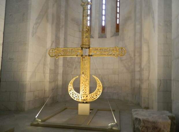 На рис.3.37 приведен старинный наглавный крест Дмитриевского собора во Владимире, относимый к XII веку, то есть к эпохе Иисуса Христа. Перед нами - османский=атаманский полумесяц со звездой=крестом.