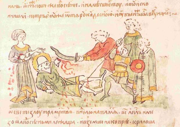 РУССКАЯ ИСТОРИЯ: Обращает на себя внимание предательское участие жены Андрея Боголюбского к заговоре. Недаром старинные художники изображали ее стоящей рядом с убиваемым Андреем и держащей в руках его отрубленную правую руку. Может быть, данный "женский сюжет" попал в тексты якобы XII века из XVI века и является отражением известной истории Есфири. Напомним, что заметный слой в летописной истории Юрия Долгорукого, а потому, вероятно, частично и в истории Андрея, составляют сведения о царе-хане Иване IV Грозном, см. книгу "Библейская Русь", гл.7:22. Он же - библейский Арта-Ксеркс. В таком случае "плохая жена" князя Андрея является отражением иудейки Есфири XVI века, то есть Елены Волошанки = Елены Глинской. (Иудейка = евангельский Иуда?).