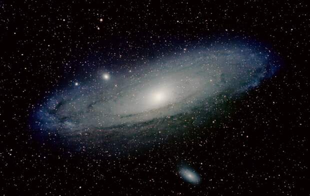 Мы можем определить Метагалактику как совокупность звездных систем — галактик, движущихся в огромных пространствах наблюдаемой нами части Вселенной. Ближайшие к нашей звездной системе галактики — знаменитые Магеллановы Облака, хорошо видные на небе южного полушария как два больших пятна примерно такой же поверхностной яркости, как и Млечный Путь. Расстояние до Магеллановых Облаков «всего лишь» около 200 тыс. световых лет, что вполне сравнимо с общей протяженностью нашей Галактики. Другая «близкая» к нам галактика — это туманность в созвездии Андромеды. Она видна невооруженным глазом как слабое световое пятнышко 5-й звездной величины. (Поток излучения от звезд измеряется так называемыми «звездными величинами». По определению, поток от звезды (m+1)-й величины в 2,512 раза меньше, чем от звезды m-й величины. Звезды слабее 6-й величины невооруженным глазом не видны. Самые яркие звезды имеют отрицательную звездную величину (например, у Сириуса она равна -1,5.) На самом деле это огромный звездный мир, по количеству звезд и полной массе раза в три превышающей нашу Галактику, которая в свою очередь является гигантом среди галактик. Расстояние до туманности Андромеды, или, как ее называют астрономы, М31 (это означает, что в известном каталоге туманностей Мессье она занесена под № 31), около 1800 тыс. световых лет, что примерно в 20 раз превышает размеры Галактики. Туманность М31 имеет явно выраженную спиральную структуру и по многим своим характеристикам весьма напоминает нашу Галактику. Рядом с ней находятся ее небольшие спутники эллипсоидальной формы. Наряду со спиральными системами встречаются сфероидальные и эллипсоидальные, лишенные всяких следов спиральной структуры, а также «неправильные» галактики, хорошим примером которых могут служить Магеллановы Облака.