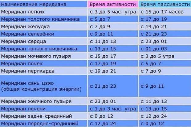 12) 01.00-03.00: открытие меридиана печени. Печень отвечает за детоксикацию. Если вы хотите, чтобы на лице не было пятен или угрей, то в период с 23.00 до 03.00 обязательно нужно спокойно спать.