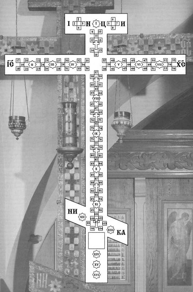 . Здесь мы тоже видим множество ликов святых, помещенных на кресте.