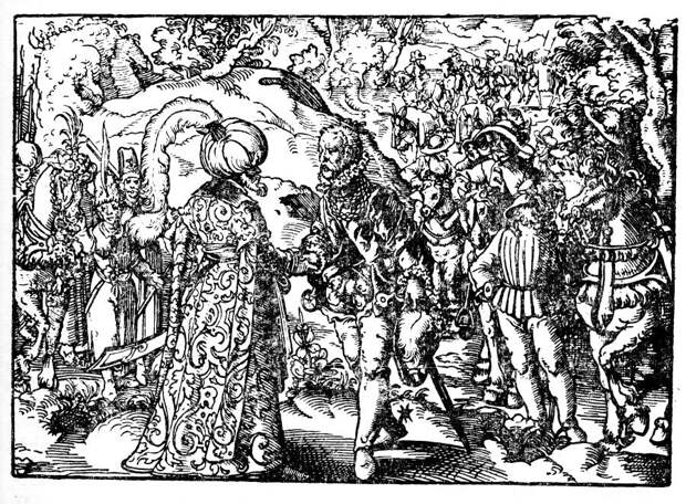 Вот, например, цитата из книги С.Герберштейна XVI века: "В 1527 году они (то есть московиты - Авт.) снова выступили С ТАТАРАМИ (?) (mit den Tartaren angezogen), в результате чего произошла известная битва при Каневе (?) (bey Carionen) в Литве" [29], с.78. Вопросительные знаки поставлены здесь современными комментаторами, которым, конечно, все это не очень нравится.