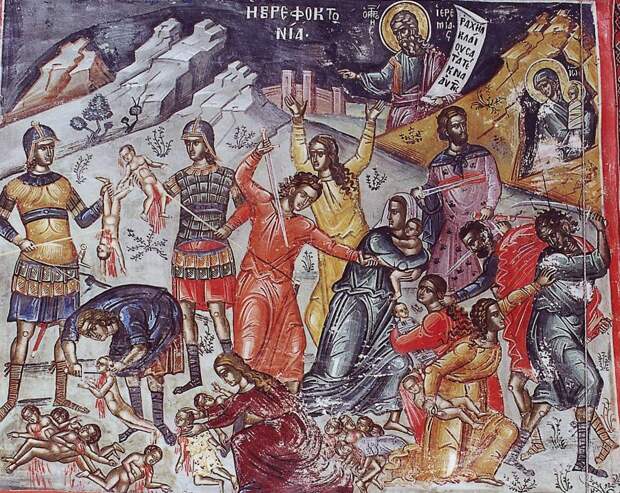 Вероятно, так отразилось избиение вифлеемских младенцев по приказу Ирода. Кстати, в данном эпизоде "король Утер", как мы видели выше, отождествляется уже не с Иродом, а с божеством, породившим Артура-Христа. Вторжение его недругов "через два года", по-видимому, соответствует евангельскому сообщению, что были перебиты младенцы в возрасте до двух лет, рис.7.1.