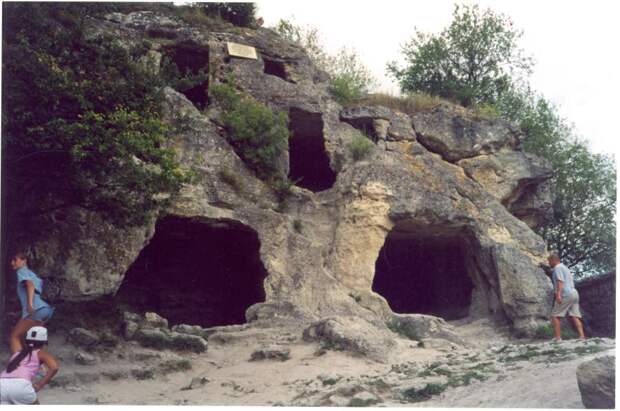 В дальнейшем В.П.Бабенчиков вернулся к предположению о принадлежности данного помещения к христианскому культовому комплексу. В 1970-х гг. М.Я.Чореф обследовал предполагаемую церковь, а в соседнем помещении раскопал усыпальницу с находившимися в ней человеческими костями. Возникло вполне обоснованное мнение о том, что, вследствие позднейших переделок, первоначальный облик церкви изменился. ВАЖНО ОТМЕТИТЬ, ЧТО НА СТЕНАХ ПЕЩЕР ДАННОГО КОМПЛЕКСА БЫЛИ ОБНАРУЖЕНЫ ПРОЦАРАПАННЫЕ ХРИСТИАНСКИЕ СИМВОЛЫ - КРЕСТЫ.