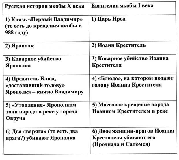 1.2. ДРУГОЙ ПОВТОР: ПЕРВЫЙ ВЛАДИМИР - ЭТО ИРОД, ЯРОПОЛК - ЭТО ИОАНН КРЕСТИТЕЛЬ, КОВАРНАЯ КАЗНЬ ИОАННА КРЕСТИТЕЛЯ - ЭТО КОВАРНОЕ УБИЙСТВО ЯРОПОЛКА.