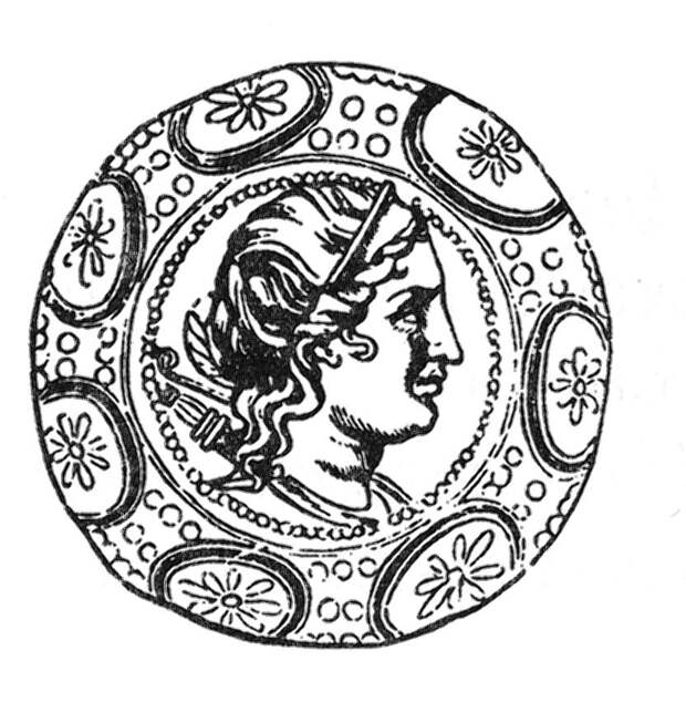 Рис.5.16. Диана (Ифигения = Дева Мария = Артемида) на "античной" монете. Взято из [524:1], с.268, илл.257.