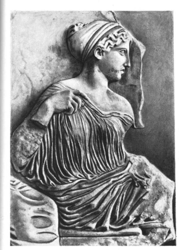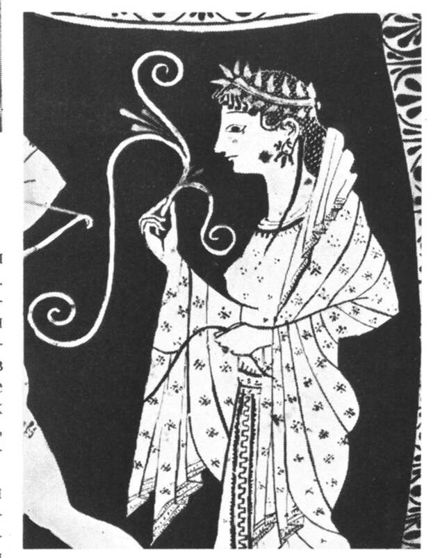 Рис.5.23. Артемида (Ифигения = Диана = Дева Мария). Фрагмент росписи на вазе. Якобы около 520 года до н.э. Берлин. Государственный музей. Взято из [533], т.1, с.107.