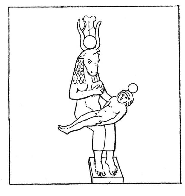 показана старинная статуэтка "древне"-египетской богини Исиды (Девы Марии) с младенцем Гором (Христом) на руках. Это изображение чрезвычайно похоже на христианские иконы Марии с Младенцем. Над головой Хора - солнце (нимб?), а над головой Исиды (Марии) - полумесяц со звездой (солнцем). На рис.5.27