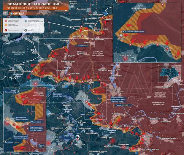 На восточном фланге под контроль российских подразделений перешли несколько опорных пунктов в окрестностях Дибровы. Ранее противник выложил в Сеть видео поднятия своих флагов в самом населённом пункте, но оно оказалось архивным. Практически на всем южном фланге направления боевые действия сконцентрированы в массиве парка «Святые горы». Российским войскам это дает некоторое преимущество, поскольку густая растительность скрывает штурмовые группы от дроноводов противника даже в условиях зимы, пишет Телеграм-канал «Рыбарь».