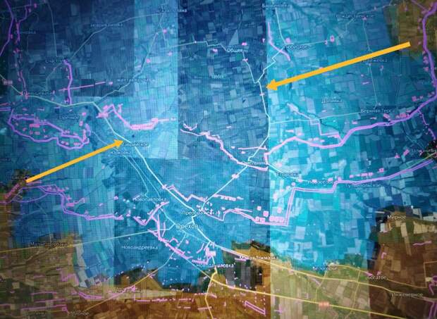Дальнейшее продвижение ВС РФ здесь несёт и угрозу выхода к логистическому маршруту Запорожье – Камышеваха – Орехов (кратчайшему для гарнизона Орехова) в районе Юрковки и Таврийского. До него остаётся 12-13 км. С плацдармов на левом берегу реки Гайчур с востока наши подразделения продвигаются ко 2-му логистическому маршруту (Запорожье – Новотроицкое – Никольское – Омельник – Орехов). До него остаётся 17-18 км.