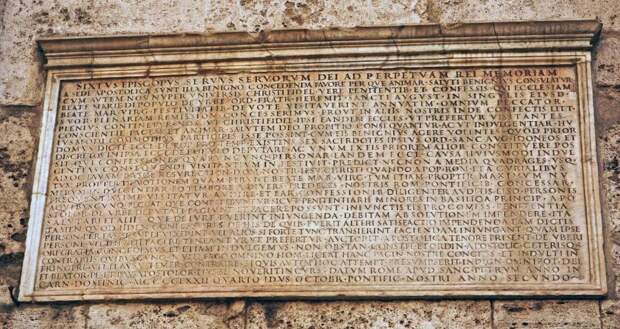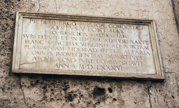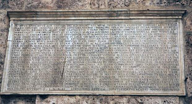 . Дата на ней записана как 24 год правления (PONT ANNO XXIV) папы Пия VII. Известно, что Пий VII правил с 1800 по 1823 год [36], с.150. Следовательно, 24 год его правления - это 1823 год. Приведем надпись на памятной доске полностью: