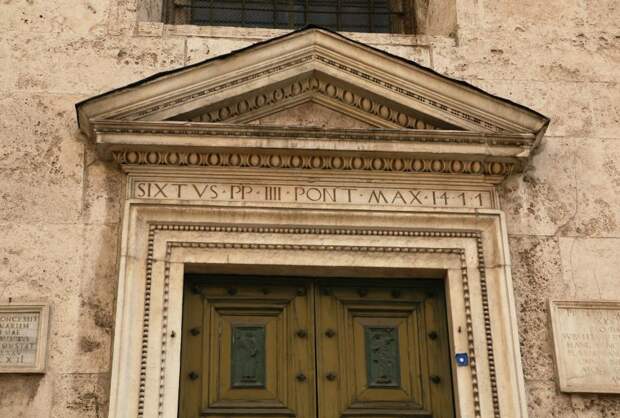 . Дата находится в последней строке надписи: "CARN DOMINIC MCCCCLXXII QVARTO IDVS OCTOBR PONTIFIC NOSTRI ANNO SECVNDO". Эта же дата повторена и на второй большой каменной доске, расположенной по другую сторону от главного входа, в конце которой написано: "ANNO INCARNATIONIS DOMINICE MILLESIMO QVADRINGENTESIMO LXXII SEXTO IDVS SEPTEM PONTIFICATVS NOSTRI ANNO SECVNDO". См. рис.213