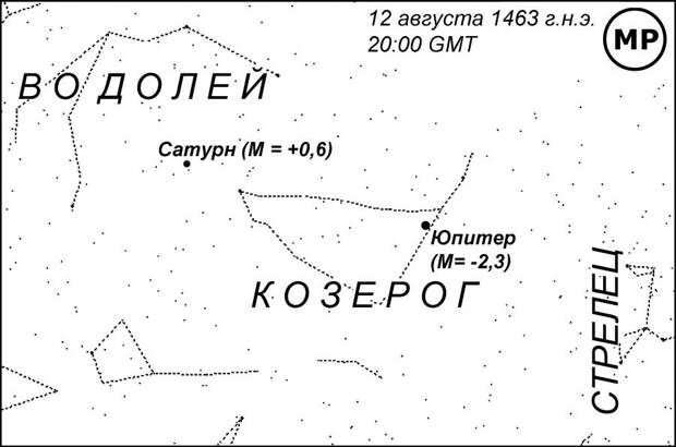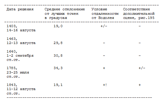 4) РЕШЕНИЕ 1463 ГОДА. Здесь также не выполнено НИ ОДНО из дополнительных условий. Первое условие не выполнено, поскольку Сатурн, как и в решении 1640 года, залезал в созвездие Водолея, рис.205