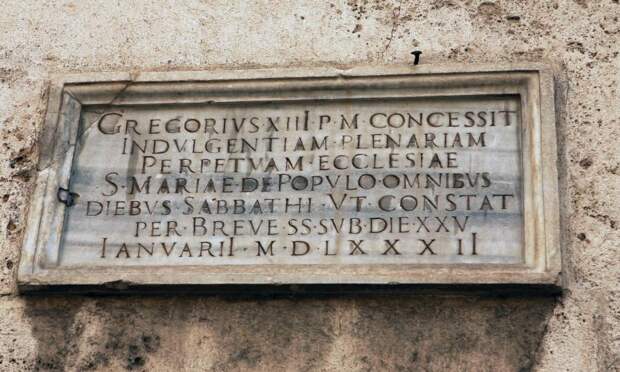 Какие еще даты записаны на стенах церкви Санта Мария дель Пополо? Очень любопытно будет посмотреть их все и выяснить, какие из них подлинные. Трудно поверить, что ни одной подлинной даты там нет. И действительно, ОДНА подлинная дата на стенах церкви Санта Мария дель Пополо была нами обнаружена. Это дата 1823 года. Все остальные даты, которые мы видели на стенах церкви, оказались ПОДЛОЖНЫ.