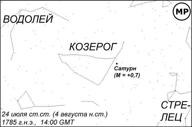 Первое дополнительное условие выполнено хорошо - Сатурн находился на краю Козерога со стороны Стрельца, рис.200