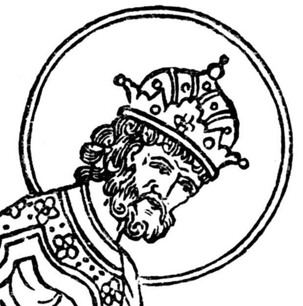 Отметим, что 17-й псалом написан, очевидно, от лица некоего правителя, царя. Это недвусмысленно подчеркивается словами "повинуяи люди под мя". Значит, автор Псалтыри был царем. В псалме 2 об этом говорится даже более прямо: "Аз же поставлен есть ЦАРЬ от него (от Господа - Авт.). над сионом, горою святою его, ВОЗВЕЩАЯ ПОВЕЛЕНИЕ ГОСПОДНЕ" [701], [701:1], псалом 2, стих 7. Здесь, кстати, автор Псалтыри выступает, по-видимому, не только как царь, но и одновременно как первосвященник, "возвещающий повеление Господне". На рис.8.10 мы приводим старинное изображение автора Псалтыри - царя Давыда, записывающего в книгу начальные слова своего первого псалма. Данное изображение часто помещалось в церковно-славянских Псалтырях. На нем сверху есть надпись по церковно-славянски: "ц[а]рь Д[а]в[ы]дъ", то есть "царь Давыд". Любопытно, что на царском венце Давыда, прямо надо лбом отчетливо изображен равноконечный ХРИСТИАНСКИЙ КРЕСТ, рис.8.11. Воротник его одежды тоже усеян крестами или цветками в виде крестов, рис.8.11. Напомним, что в скалигеровской истории царь Давыд жил якобы за сотни лет до нашей эры и вряд ли мог носить шапку с крестом на лбу. Конечно, это - мелкий штрих, который сам по себе ничего не доказывает. Крест могли пририсовать и потом. Но все-таки он хорошо дополняет общую и весьма неожиданную картину, которая теперь открывается перед нашими глазами.