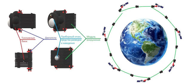 Концепт орбитального перехватчика «Жнец», атакующего ИСЗ противника «на пролёте»