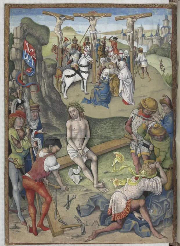 Жан Пуайе «Мученичество святого Адриана» (фрагмент). Миниатюра из Часослова Генриха VIII. Библиотека и музей Моргана, Нью-Йорк