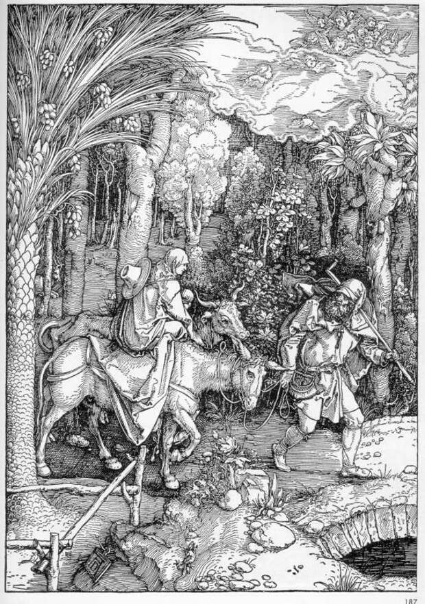 На рис.3.18 мы приводим старинное изображение на евангельский сюжет: бегство Святого Семейства в Египет. Как мы теперь начинаем понимать, на многочисленных старинных картинах, отражающих эту тему, представлено бегство Иисуса Христа вместе с матерью Марией из Царь-Града во Владимиро-Суздальскую Русь = "Египет" в середине XII века. А более точно, около 1155 года. Они вернулись на родину Андрея после пребывания в Царь-Граде = Вышгороде = Киеве и остались во Владимире на довольно длительное время. Не отсюда ли название ВЛАДИМИР = Владеющий Миром? Дело в том, что через некоторое время христианство было распространено войсками Руси-Орды по всему тогдашнему миру. А потому город, где (или около которого) родился Иисус Христос, по праву получил название - ВЛАДЕЮЩИЙ МИРОМ.