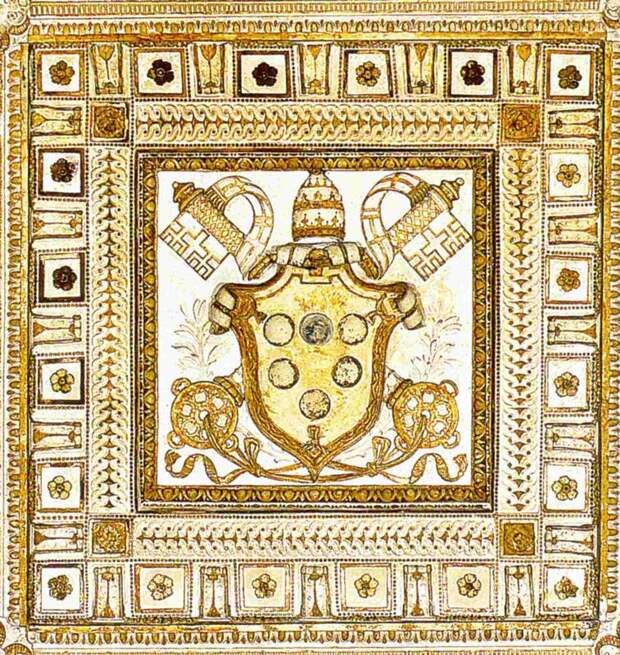Обращает на себя внимание, что папский герб изображен в Лоджии Рафаэля лишь один раз, в то время как ЛУК И ВЕНЕЦ по пять или шесть раз. Значит, они рассматривались даже как более священные, чем атрибуты папской власти. Такой факт уже сам по себе намекает на их связь с Христом.