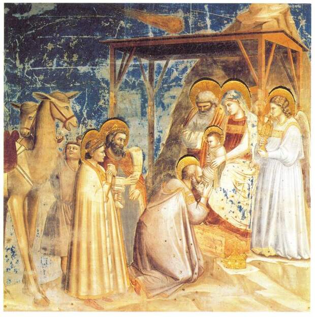Таким образом, подобные средневековые изображения доносят до нас, по-видимому, старинную традицию связывать с Рождеством как вспышку звезды, так и появившуюся в то время комету.