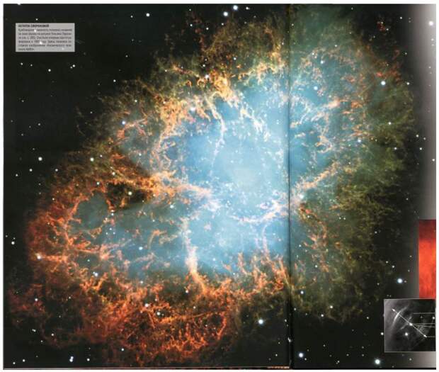 На рис.1.5 и рис.1.6 приведены две фотографии Крабовидной туманности 1973 и 2000 годов. На рис.1.6a- фотография, сделанная при помощи мощного телескопа Хаббл.