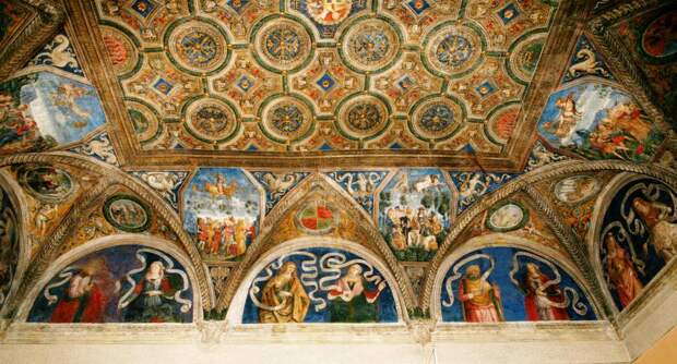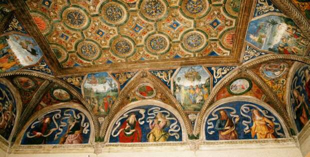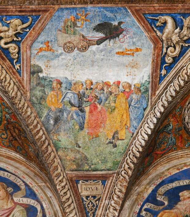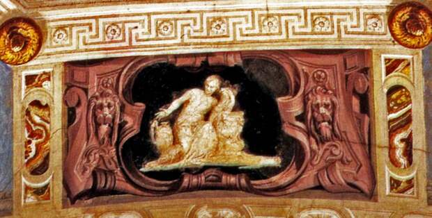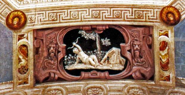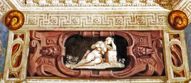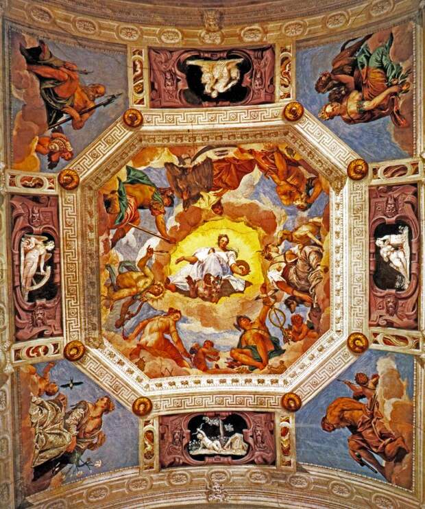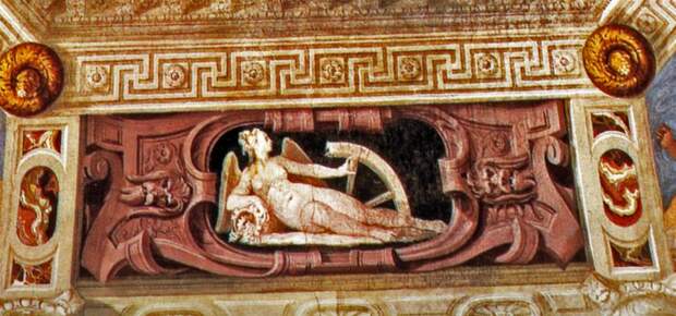 Зодиак Олимпийцев представляет собой потолочную роспись, разбитую полосами лепнины на 9 частей, рис.126
