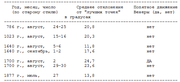 При этом, ТОЛЬКО ОДНО РЕШЕНИЕ - 2 АВГУСТА 1700 ГОДА - УДОВЛЕТВОРЯЕТ ВСЕМ, БЕЗ ИСКЛЮЧЕНИЯ, ТРЕБОВАНИЯМ, В ТОМ ЧИСЛЕ И ДОПОЛНИТЕЛЬНОМУ АСТРОНОМИЧЕСКОМУ УСЛОВИЮ ПОПЯТНОГО ДВИЖЕНИЯ ВЕНЕРЫ.
