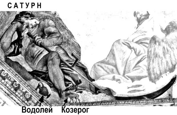 И опять-таки не возникает никаких противоречий с грубым гороскопом зодиака Олимпийцев, изображенным в центральном восьмиугольнике (он же - грубый гороскоп зодиака Астрономии). Сатурн показан там между Водолеем и Козерогом, см. выше. Теперь же мы видим, что он был именно в Водолее.