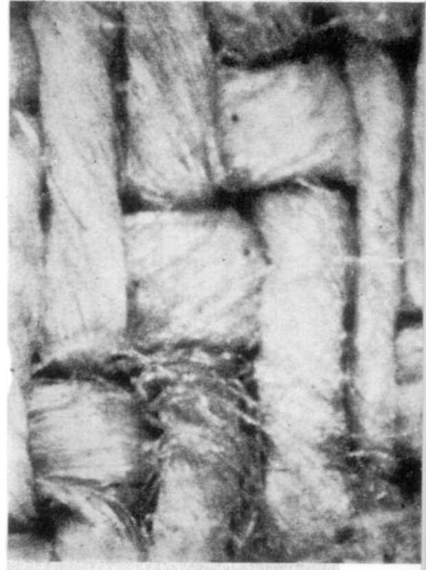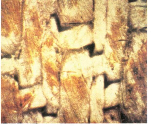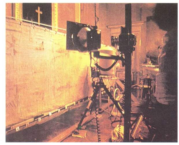В 1969 году к Плащанице впервые были допущены ученые. Ранее научные исследования Плащаницы опирались лишь на ее фотографии. Вплоть до 1988 года <<прямые научные исследования Туринской плащаницы проводились лишь дважды: в 1973 и 1978 годах, причем на результатах 1978 года основаны все выводы ученых о физических и химических свойствах ткани, изображения и следов, которые отождествляются со следами крови... Изучалась спектроскопия Плащаницы в широком диапазоне от инфракрасного спектра до ультрафиолета, флюоресценция в рентгеновском спектре, проводились микронаблюдения и микрофотографирования, в том числе в проходящих и отраженных лучах (см. рис.1.19 - Авт.). Единственными объектами, взятыми для химических анализов, были мельчайшие нити, которые оставались на липкой ленте после ее прикосновения к Плащанице (на самом деле в 1973 году небольшой кусочек Плащаницы был все-таки вырезан [1082:1] - Авт.). Результаты... можно суммировать следующим образом.