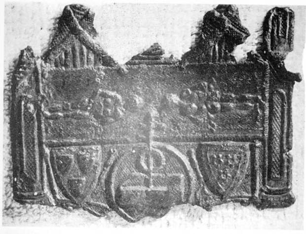 На рис.1.31 показан свинцовый медальон, как полагают, выловленный из Сены во Франции в XIX веке. В верхней его части мы видим изображение Плащаницы и двойного отпечатка тела Христа на ней. Считается, что "на медальоне изображен герб Готфрида ди Шарни, которому Плащаница принадлежала" [244], с.31.