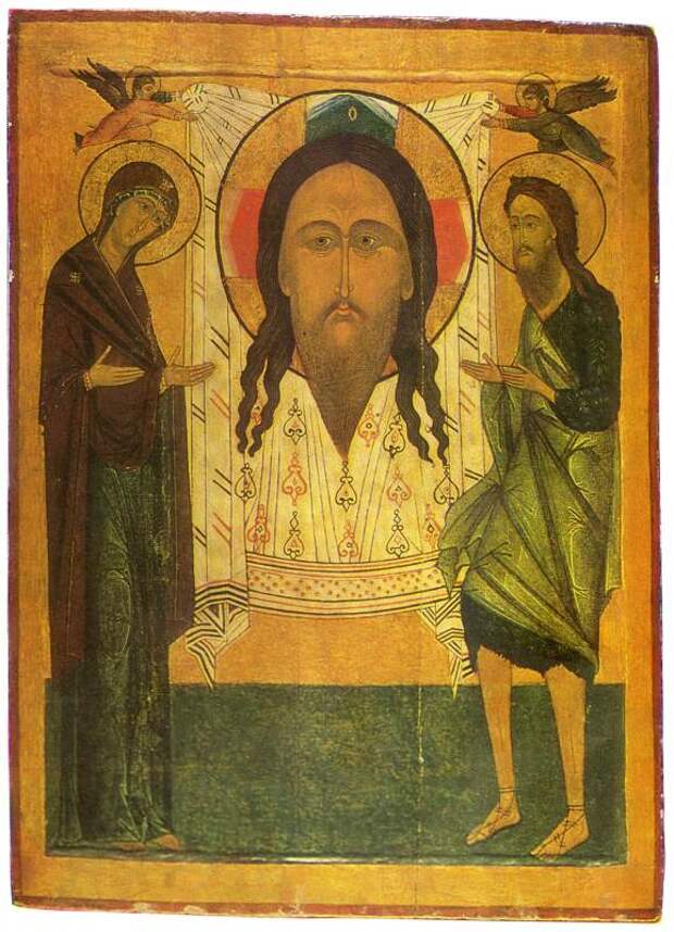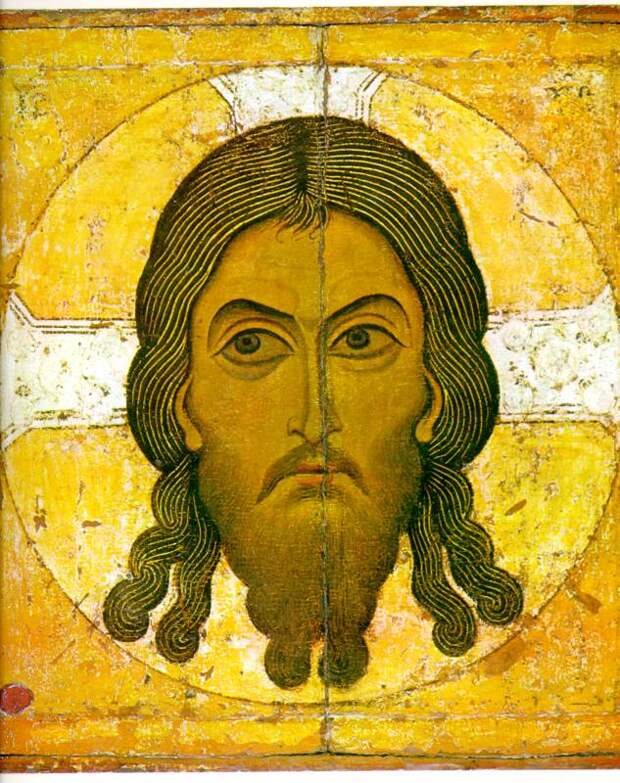 Оказывается, Нерукотворный Образ или Убрус <<называли также и другим греческим словом ТЕТРАДИПЛОН. Значение этого слова - "сложенный в четыре раза" - было неясным. Если же мы обратимся к Туринской плащанице, то станет понятен смысл этого названия. По следам от пожара... можно определить, что четырехметровая Плащаница была сложена четыре раза так, чтобы лик оказался посередине и на поверхности сложенной Плащаницы>> [63:1]. См. также [244]. Итак, мы видим, что по сохранившимся на Плащанице следам прежних линий сгиба действительно можно узнать, что Плащаница хранилась так, чтобы был виден только лик Христа на ней. То есть - Нерукотворный Образ. Который ПРЕКРАСНО ИЗВЕСТЕН НА РУСИ. Он изображен в каждом русском храме, ему посвящен особый праздник в русской церкви. Нерукотворный Спас - одна из самых известных на Руси икон, см., например, рис.1.24. Еще две русские иконы с изображением Спаса Нерукотворного мы приводим на рис.1.25 и рис.1.26.