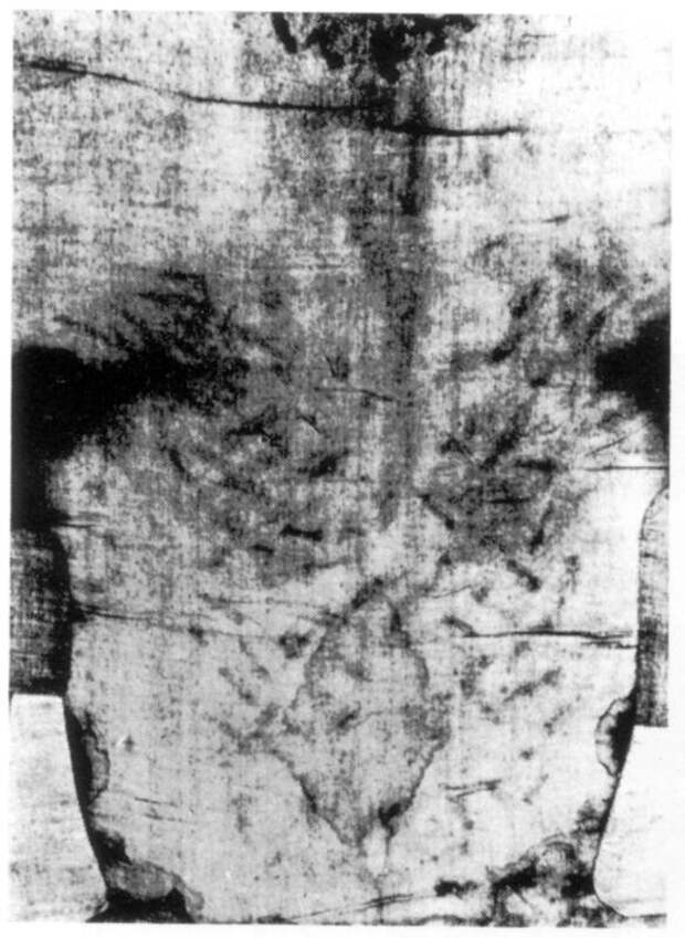 Туринская плащаница приковала к себе всеобщее внимание после того, как в 1898 году фотограф Секундо Пиа (Secundo Pia) сделал по поручению церковных властей ее первые фотографии [63:1], [244]. Проявив фотопластинку, он с удивлением обнаружил, что на негативе возникло четкое позитивное изображение человеческого тела спереди и сзади. Оказалось, что изображение на Плащанице - негативное. Кроме того, оно плохо видно при взгляде не на просвет. Напомним, что сегодня (и уже давно) Плащаница нашита на другую ткань. Так было сделано для сохранности, поскольку ткань Плащаницы тонкая и уже достаточно ветхая. Поэтому на просвет ее посмотреть уже нельзя, а при обычном осмотре видны лишь общие смутные очертания. На фотографическом же негативе получилось довольно четкое реалистическое изображение, с проработкой мелких деталей.