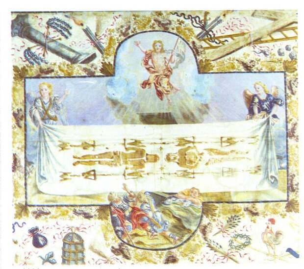 На рис.1.29 представлено еще одно западноевропейское изображение Плащаницы, датируемое XVII веком. Здесь художник изобразил двойной отпечаток тела Христа, как на Туринской плащанице.