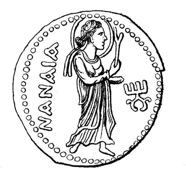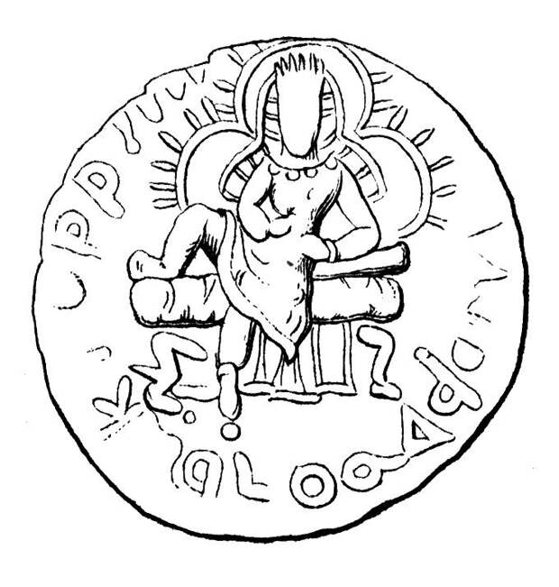 Рис. p1.22. “Античная” Нанэя с христианским нимбом на медной монете царя Эрки. Взято из [817:2], с.191, лист IV.