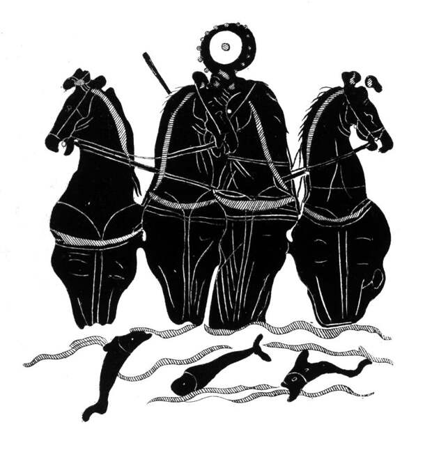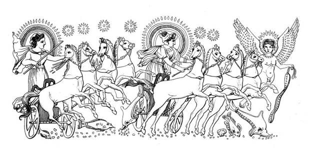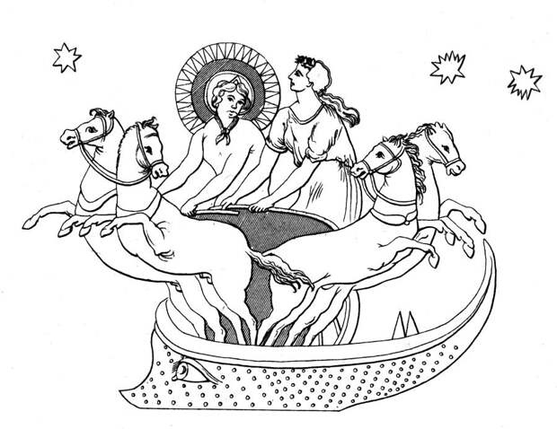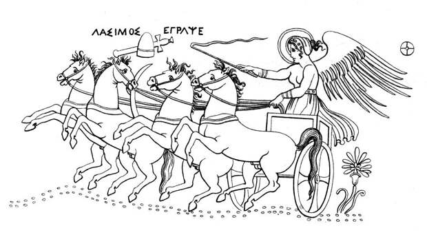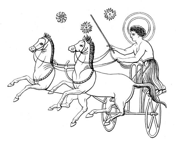Рис. p1.1. “Античный” Гелиос с христианским нимбом на вазе с черными фигурами. Якобы V-VI века до н.э. Взято из [817:2], с.189, лист I.